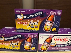 おはようございます😊 リポビタンフィール😄 以前差し入れで頂いて😊 これ飲むとなんだか寝つきも良いし😴 寝起きもスッキリ✨首から肩まで痛いのがマシかも😃💡っのやつ😁 また昨日も差し入れで3箱も頂きました😆 昨夜は寒すぎて🥶何度も起きるかなぁと思ってたけれどもこれのおかげか朝までしっかり眠れて😴 寒さでガッチガチになりそうな肩など思ったよりもマシで起きれました☺️ 私に合ってるよ☺️ありがたい💓