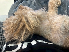 家に帰ってきたら 愛犬がべったり🐶❤️ 明日はトリミング✂︎ このもじゃもじゃ伸びた感が一番可愛い💓