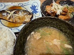 こんばんは🌆 今日は唐揚げと お味噌汁食べたくて 定食屋さんで サバ味噌と唐揚げと 豚汁大とご飯大盛り 食べて胃がパンパン🤣🤣🤣 明日からダイエット しないとですね😚