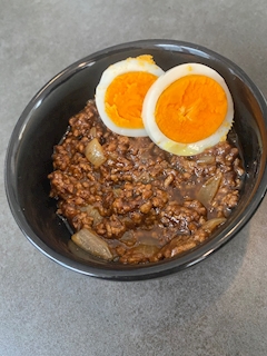 本日の一品▶︎ キーマカレー❤︎ ゆで卵添え ✳︎置きご飯やから・お米は炊飯器にあるのん入れてってスタイル▶︎