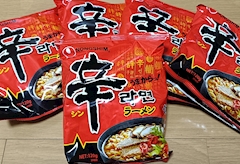 シノブ嬢の投稿にもあった、辛ラーメン♪ 既に、数個食べてしまったけど!笑 このカップ麺もあるけど、アクビはグツグツ煮る袋麺の方が美味しく感じる🩷