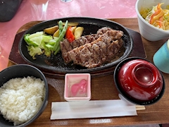 ゴルフ場でステーキ🥩 めっちゃ美味しかった😋 昼から酔っていい感じ🤣 今日は休みです! 明日からヨロシク お願いします☺️