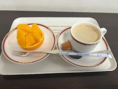 お昼のデザートは オレンジ🍊とコーヒー☕️です😃 寝不足で眠いです🥱💤