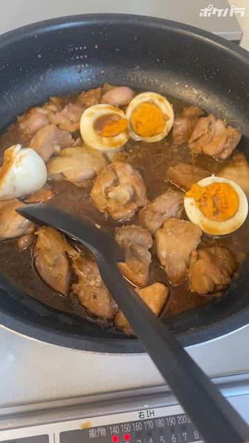 本日の一品▶︎ 鶏もも肉のさっぱり煮❤︎ ゆでたまご添え ✳︎味見したけど・ポン酢で煮込んだからめっちゃ柔らかくておいしすぎた🥺