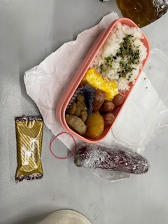 お客様に芋🍠貰ったので、お弁当と一緒に食べます😋お腹空いたぁ〜