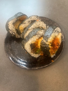 本日の一品▶︎ カレーうどん❤︎ カレー作ったときは余ったルーはカレーうどん用に冷凍保存するー。 カレーうどんの具材を加えてだし汁たしてとろみつけて出来上がり🥺 今日の具は豚肉、玉ねぎ、人参、薄揚げ❤︎ それとあとは深夜行ったお寿司さんでテイクアウトした巻き寿司🥺
