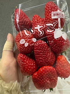 奈良で買ったいちご🍓550円 安いし美味しかった😋一パック全部もう食べた🍓 親指怪我しております🥹 そして昨日歩きすぎてちょっと筋肉痛 こんなに1日で歩くことない笑