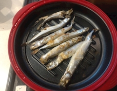 電子レンジで魚🐟が焼けるとな? 早速買ってみて、ししゃも焼いてみました🎵 ちゃんと焼けてたし、焦げ目もバッチリ✌️ マヨネーズに一味をかけて食べたらサイコー