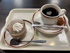 今日のお昼ご飯後の デザートは ココアプリンとコーヒー☕️です350円笑 この価格で ほっこりさせてもらえるの幸せ🥰