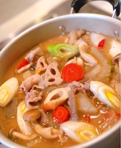 今日は風があって寒々ブル:(・-・):ブルなので豚汁作りました🍲具材はお正月に余ってたものなどなど…大根、人参、白菜、白ネギ、ごぼう、れんこん、しいたけ、しめじ、うすあげ、こんにゃく、ちくわ、豚肉野菜具たくさん栄養満点💯七味かけて食べたらウマウマでした😋