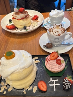 今日は休みなので友達とパンケーキ🥞 私も友達も新春のパンケーキ😋 運ばれて来た時からクリーム倒れそうですぐ倒れた なんかちょっと写真と違う気はしますけど美味しかった🤤✨ ここのお店行くまでも帰りも寒すぎて凍えるかと思った🥶 ラテアート可愛い🐴