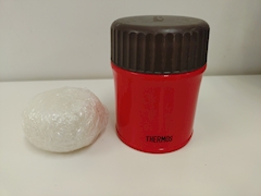 冷凍しておいたカレーと白米🍛🍚 この白米をカレーのルー入のTHERMOSにドボンしたらカレーライスの出来上がり👍 超‼️手抜き弁当😂 隣にいた人にそのアイデア斬新!と褒められちゃった?😃 タイパ、バンザイ🙌