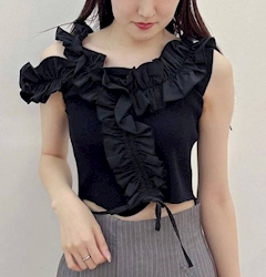 上ね! これに、白のロングスカート履いてました♪ 同じようなフリフリで〜笑 最近は、キャバ嬢服と普通のワンピース服の境目が無くなってきているような気がする。。。🤔