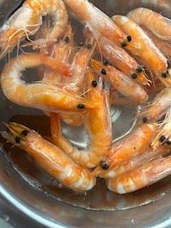 おはようございます😊 箱に入った冷凍えびを使おうと🦐 開けてみたら思ったのと違うかったわら😁 茹でてあるやんw 只今解凍中… だけれども😅目がめっちゃ怖い😱 目デカ過ぎるやろwちょっとビビってます😅