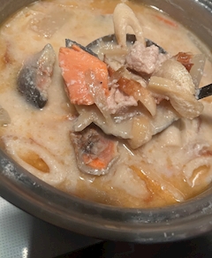 こんな寒い日は🥶いつものあれ🥣🤣 下準備しておいたのでささっと粕汁作って夜食に食べました😋 私のブログで何回も出てくるけどいつでも出来るように材料はストックして週一、二回は作ってるよ🤣 身体温まるカレーか🍛粕汁🥣それだけで生きていけそう😅 そういえばお昼はこれまたスパイスカレー🍛食べたなぁw おやすみなさい…。