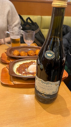 友達とサイゼ飲み 友達は一生ビール派だから1人でワイン1本飲んだ🍷 食べすぎたー🐷