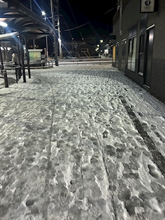 昨夜は 早上がりさせてもらって よかったです☃️ 最寄り駅に着いたら 雪積もっていました😿 阪急電車🚃 遅延もせずにすごい👍 今日は暖かいところへ行ってきます🚗