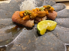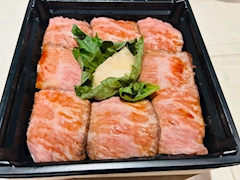 差し入れで、こちらいただきました💁♀️ 上に、松坂牛のローストビーフ🥩 下のしゃりはミニサイズ。 なので、チビ鞠寿司🍣て書いてた😆 一口サイズで美味しかった〜👍 ご馳走様でした😋