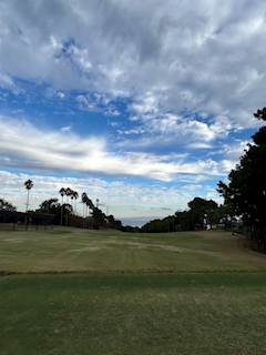 初めてのゴルフ場にきました⛳️ 🌴と🏖️が見えて綺麗です😌 前半 最初のホールで大叩きしました😭そして最終ホールダボ😳前半45後半頑張ります👊