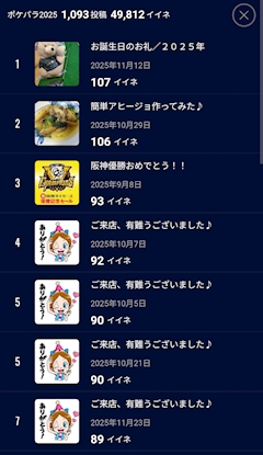 あくび(AKB)ポケパラ 2025年 イイネ ランキング