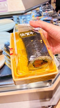 恵方巻き、南南東向いて食べてたら 途中でむせて ふきだしてしまった😂 無言で食べるところが 途中で笑ってしまった😂 ことしは笑いが多い1年になるのかな😂 写真はなぎちゃんが買った恵方巻き! 佐賀牛選んでた、笑