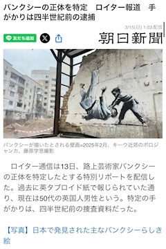 おはようございます😊 昨日のお昼の仕事の休憩時間に盛り上がってたお話☕️ バンクシーの正体発覚か…………。 なら捕まるのかぁ👮🚔 長い間…世界的有名絵画の世界では短いけれれど😅 バンクシー……… ずっと何らかの組織の社会的問題に対してのメッセージある絵ともっと大事なストーリー そんな一種の構想のパフォーマンスであるに違いない!と、思ってたけれど😜 そのパフォーマンスにまんまとハマって見たり感じたり世界観に入るのは楽しいよ😆 全く違うけれども感じ方や思い方は私にとっちゃ〜Disneyの世界観と変わらない🤣 この人捕まっちゃうのかなぁ😅 今後も注目出来るパフォーマンスやわ😅 このストーリー どうなるか楽しみ😜