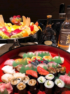 こんにちは❤︎ 昨日のお礼✨ まりは、お食事からの出勤でした✨ お寿司🍣ごちそうさまでした✨ 店内でもフード、ドリンクたくさん✨ ごちそうさまでした✨ ラストまで、いつもありがとうございます✨ では、また後で❤︎