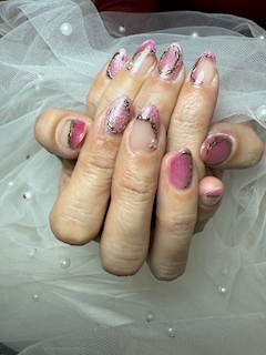 爪が小さいのと肩幅が狭いのが悩みのりえです💙 毎月のお楽しみネイルチェーンジ💅💅💓 デザインも色も散々悩んだけど春という事でおピンク🩷 ちょっと派手かなぁと我ながら思うが 季節を感じられる機会があまり無いから思い切って良かった🩷🩷 自分の機嫌は自分で取りましょう🩷