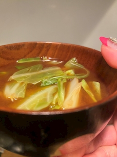 皆様おはようございます✨ 今朝も朝のお味噌汁✨ 春キャベツの味噌汁✨赤だしなので濃いめのお味です♡ 朝赤だしを飲むと頭がシャキッとする気がすると思っていたのはどうやら本当の様でした✨(寝不足過ぎたら無理そうです笑) 合わせや白味噌には癒しの効果があり、よく眠れるそうですよ✨ なんかで見ましたが失念。