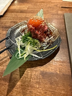 こんばんは🌆 無事に到着しました🤣 飲みたい気分だけど 誰も予定ない😂 ボチボチ頑張ります☺️ この前のユッケ 美味しかったな😋