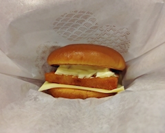 モスで1番好きなフィッシュバーガー🍔 フィッシュの厚さが半分になってる🫨 それなのに値上がりしてる😩😫😱 もう値上げ疲れしてしまった🥺
