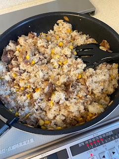 本日の一品▶︎ ペッパーランチ風ライス❤︎ ✳︎ど平日やから怒られるやーつ 笑 🧄ごめんね🥹