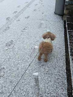 今朝の京都は うっすら雪❄️が積もっています☃️ 大阪は積もってないかなぁ❓ 雪の日のお散歩 このくらいの積雪の時は あえて雪の上を走って歩く愛犬🐶 足🐾冷たくないのかなぁ😅☃️