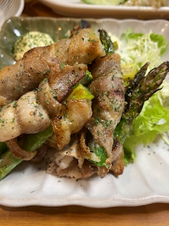 皆様こんにちは✨お疲れ様です✨ アスパラの豚巻き🌳 王道の美味しさですね☺️✨ アスパラガスには豊富な食物繊維から美容やダイエット効果があるみたいですよ✨ またアスパラのアスパラギンという成分だったかな?それがめっちゃ疲労回復効果があるようですから、お疲れ気味の方へオススメします☺️ 実際に食べると元気になった気がしました✨ 本日出勤しますので宜しくお願いします♡