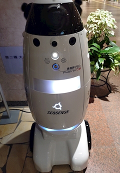 毎朝通る通路の警備ロボット 真ん中辺りの白く光っている所はおはようございますと クルクル回ってます。(写真には写らない) 近づくと避けられるw ではお仕事行って参ります😖