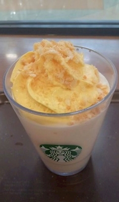 シュークリームフラペチーノ❗️❓ スタバの新作名称から興味をソソられる一品ソッコーで啜ってきたシュークリームというよりミルクセーキっぽい上に乗っているシュー生地は時間が経ってもパリパリのままなので好みが分かれそう…
