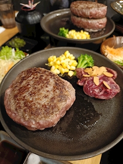 Jに行く道中にできていた 『福よし』 ハンバーグのお店で、前から気になってました!👀 今回、予約して行ってみました♪ シャトーブリアンも入っているお肉✨ 炉で焼いて、好きな焼き加減で食べれます 定食みたいな感じで済むのかなぁと思っていたら、結構、お値段しました⤵😅 座席も、すく直ぐ満席!!💦 人気のあるお店だと思いました☆ お客様のお祝いごとがあって、アクビがゴチさせてもらいましたよ。😊 お客様、喜んでくれてよかったで良かったです🩷🤗