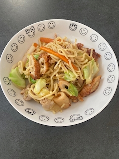 本日の一品▶︎ 塩焼きそば❤︎ ✳︎インフル娘お昼からピザにドリア ←冷食🥹 もうインフルバイバイキーンだね❤︎ あとは隔離期間終了待つのみ!!!