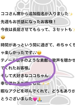 皆様お疲れ様です✨ 土曜日お疲れ様でした✨ くみさんのお席で場内いただきありがとうございました🙇♀️🙇♀️🙇♀️ ご馳走様でした✨ お客様にもどうぞよろしくお伝えくださいませ✨ おやすみなさい💤