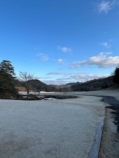 7:38スタート▶️今日はゴルフへ行ってきました⛳️ 氷点下2度❄️🥶朝からフェアウェイは真っ白で グリーンは凍っていました😂 前半は大変なことになりました笑 9:50から休憩🍚お腹も空いていないのでうどんにしました😊 午後は晴れていたけど風がきつかった🌪️笑